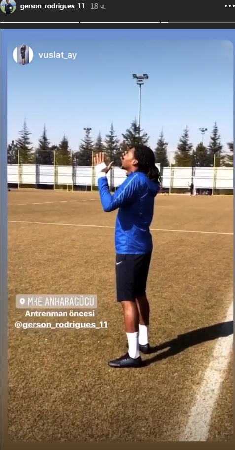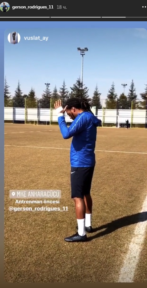 Нападающий "Динамо" Жерсон Родригес, выступающий на правах аренды за турецкий клуб "Анкарагюджю", показал, как он молится перед началом тренировки команды.
