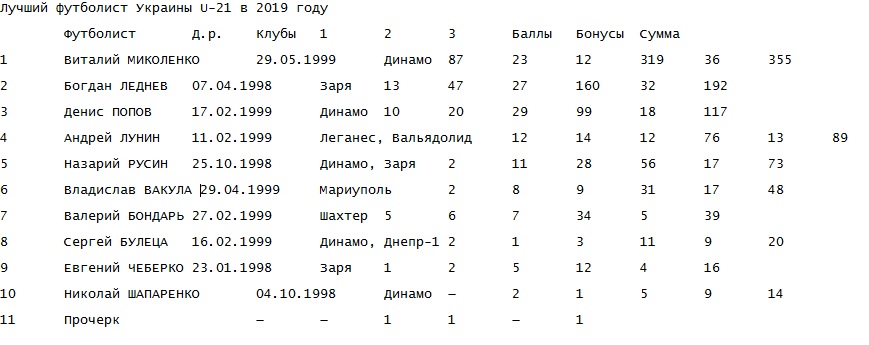 В слову, Миколенко и в 2018-м был признан лучшим футболистом Украины. Но в категории U-19.