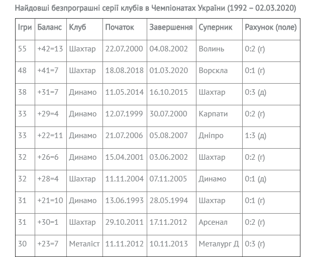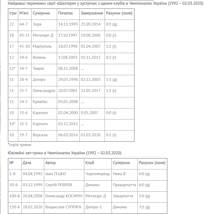 «Гірники» перервали свій безпрограшний серіал у Чемпіонатах України, який із 11 серпня 2018 року тривав 48 ігор: 41 перемога та 7 нічиїх, не дотягнувши 8 матчів до свого ж рекорду УПЛ. «Гірники» також завершили і свою переможну серію в матчах з полтавчанами, яка з 6 березня 2016 року тривала 10 (!) ігор. До речі, саме «Шахтарю» належить найдовша в Чемпіонатах переможна серія, яка в зустрічах донецького клубу та «Зорі» тривала 22 (!) гри.