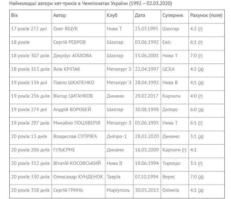 Супряга - 13-й игрок, который оформил хет-трик в УПЛ в возрасте до 21-го года
