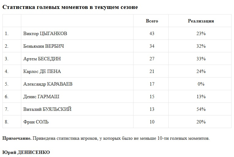 отмечалось, что в нынешнем сезоне у Динамо прилично хромает реализация