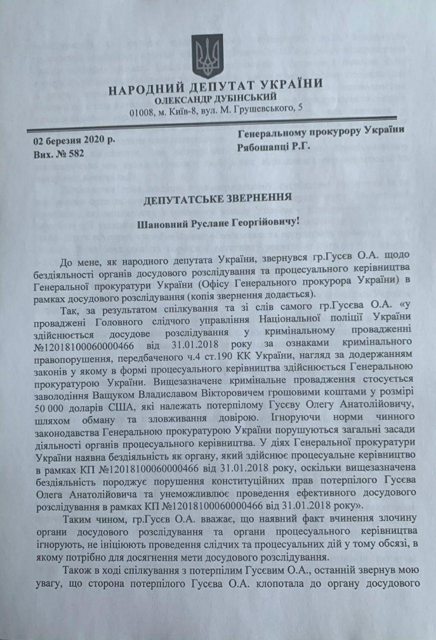 Гусев обратился к депутату "Слуги народа" Дубинскому, попросив его помочь в ситуации с долгом Ващука