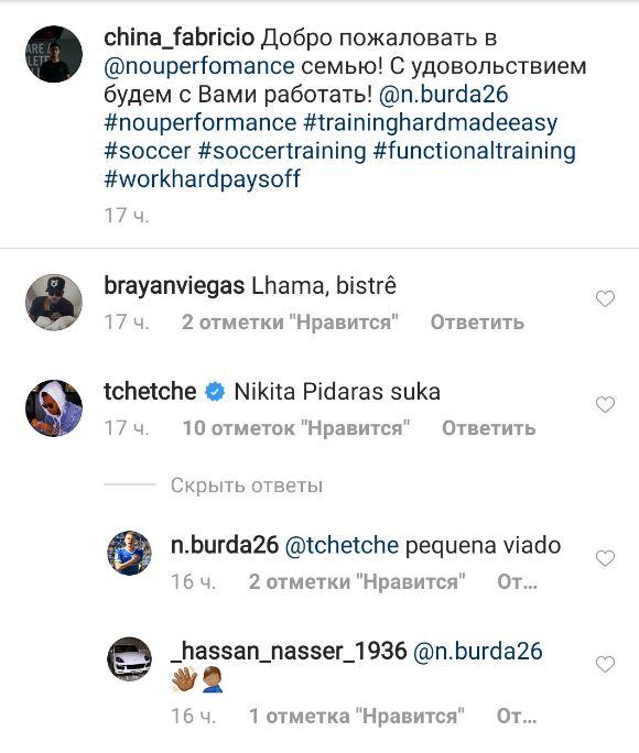 Бывший легионер "Динамо" Че Че и защитник киевлян Никита Бурда забавно пообщались в Instagram.