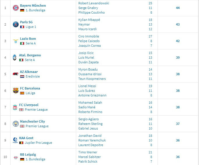 Форвард вместе со своими партнерами по бельгийскому клубу вошел в топ-10 рейтинга самых продуктивных трио в топ-10 европейских чемпионатов прямо сейчас.