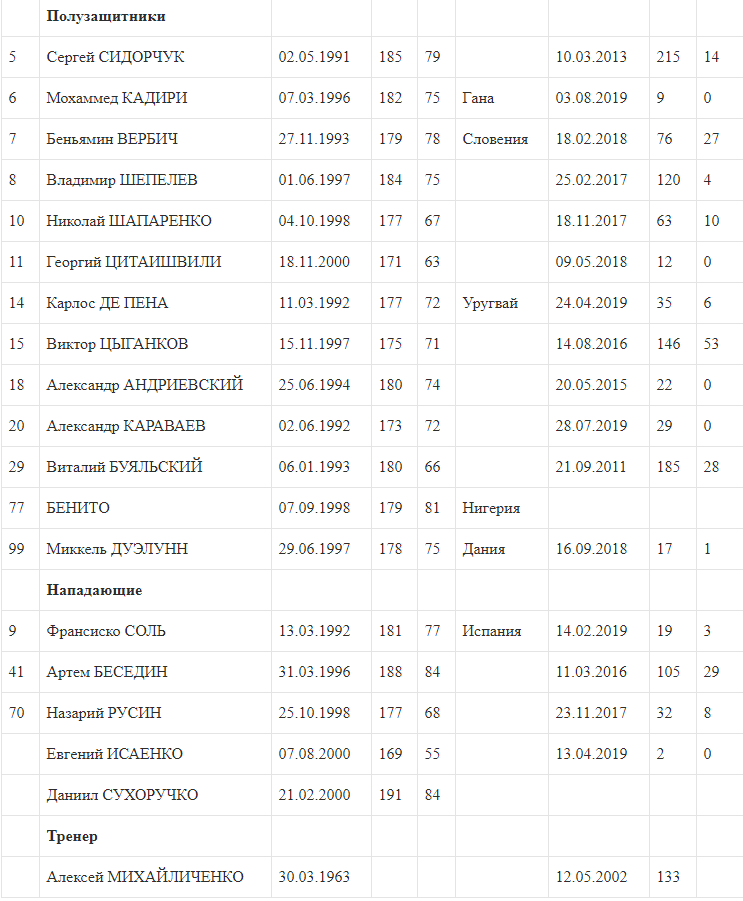 К слову, сейчас мы видим команду Александра Хацкевича, а не Алексея Михайличенко. Нынешний рулевой принял бразды правления 15 августа 2019 года. С того момента в основной обойме не появился ни один дебютант.