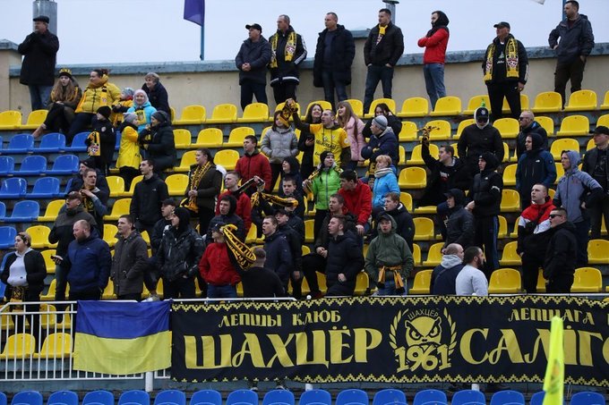Фаны солигорского "Шахтера" вывесили на трибуне украинский флаг
