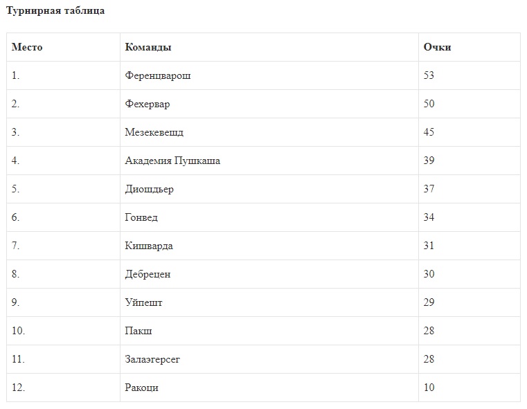 За четвертую еврокубковую строчку наверняка поборются Академия Пушкаша и Диошдьер, не стоит списывать и Гонвед. Что касается выживания, то Ракоци уже ничто не спасет. Зато второе место с конца вполне «вакантное». Занять его могут все оставшиеся команды нижней половины таблицы.