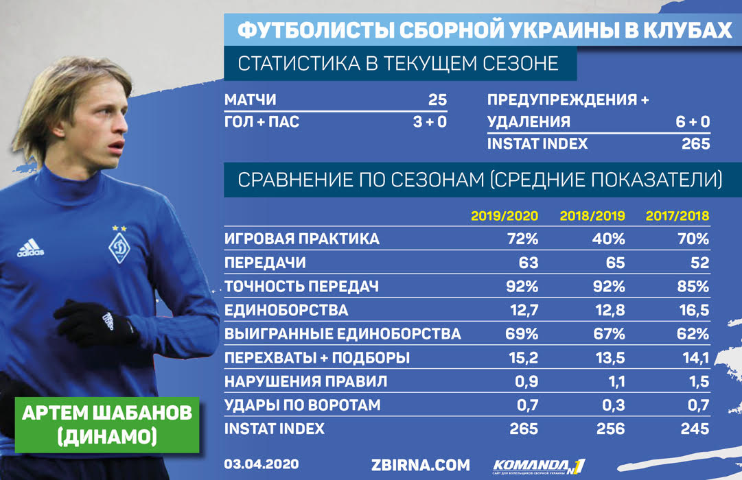 В сборной этот защитник, впрочем, не является основным. В команде Андрея Шевченко игрок Динамо провел только два матча — и это были спарринги. Вызовы получал часто и даже трижды попадал в заявку на поединки отборочного турнира Евро-2020, но до стартового состава сине-желтых Артему Шабанову, складывается впечатление, пока далеко. Нужно прибавлять в клубе, причем не самому, а вместе с партнерами. И прибавлять, прежде всего, в вопросах организации игры.