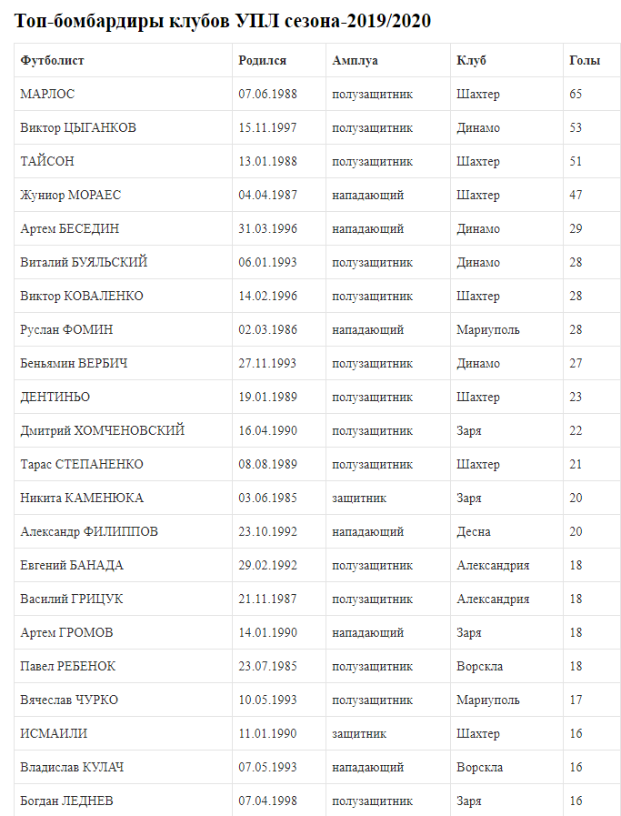 Команда1 завершает изучать стаж футболистов в клубах УПЛ сезона-2019/2020. В расчет брались игроки, заявленные на вторую часть этого сезона. Были найдены даты дебюта каждого за первую команду нынешнего клуба. Посчитаны матчи и голы за основу в официальных турнирах. В этот список традиционно входят чемпионат, Кубок и Суперкубок Украины, а также еврокубки.