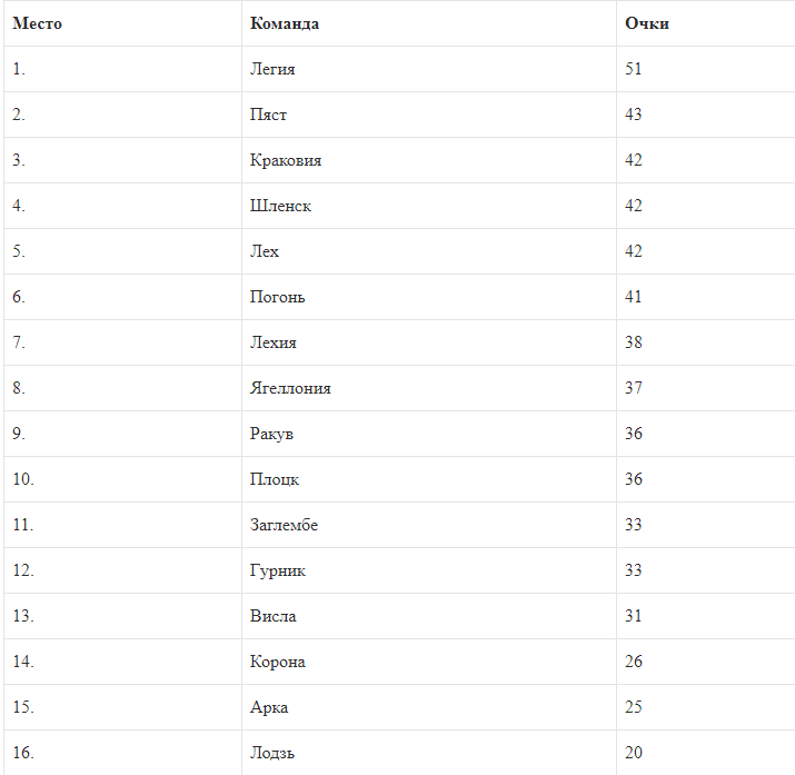 На последнем месте засел Лодзь, отстающий от спасительной зоны на шесть очков. Получше ситуации у Арки, которая будет пытаться обойти Корону. Не исключено, что к группе аутсайдеров позже присоединится еще кто-то.