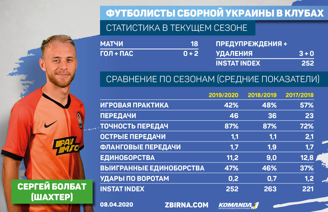 Табель успеваемости в клубе игрока сборной Украины. Сергей Болбат