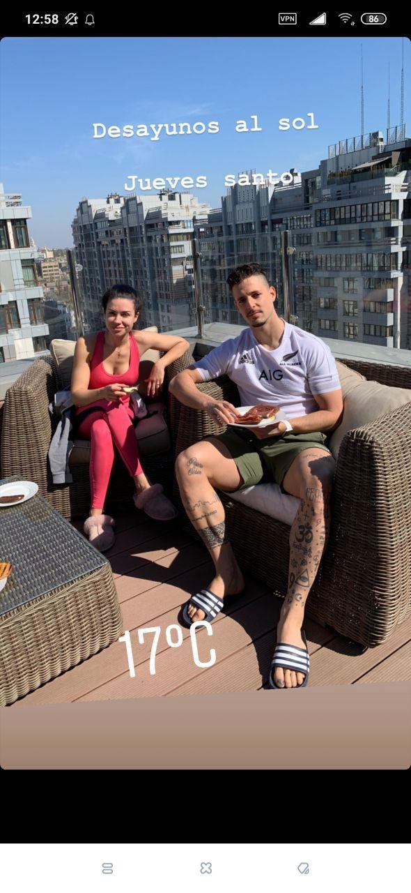 Нападающий "Динамо" Фран Соль вместе с женой позавтракал на крыше своего дома.