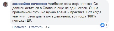 - Алибеков пока ещё не готов. Он должен остаться в Словане ещё на один сезон. Он на правильном пути, но нужно время и практика. Вот когда увеличит свой диапазон в движении, вот тогда 100% поможет ДК.