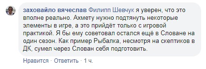 Есть ли у него перспективы стать основным в ДК? Я уверен, что это вполне реально. Ахмету нужно подтянуть некоторые элементы в игре, а это придёт только с игровой практикой. Я бы ему советовал остаться ещё в Словане на один сезон. Как пример Рыбалка, несмотря на скептиков в ДК, сумел через Слован себя подготовить.