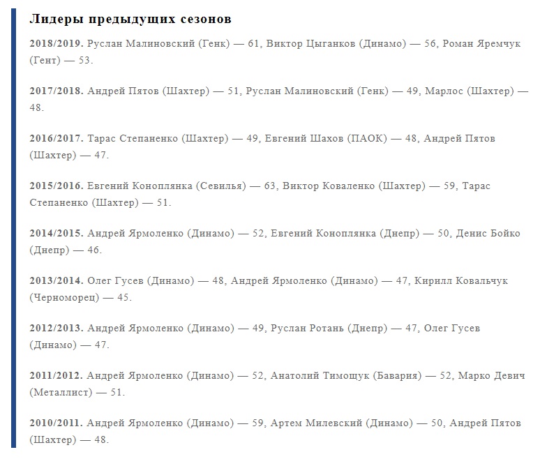 Любопытно, что в прошлом году больше всех матчей провел тоже представитель чемпионата Бельгии — бывший полузащитник Генка Руслан Малиновский. У него тогда был 61 матч за сезон. Однако Игорь Пластун даже в теории уже не сможет добраться до этого показателя, ведь сборные в этом сезоне уже точно не сыграют, а в чемпионате Бельгии он может сыграть максимум 13 поединков. К слову, абсолютный рекорд принадлежит Евгению Коноплянке, который в сезоне-2015/2016 провел за Севилью и сборную 63 поединка.