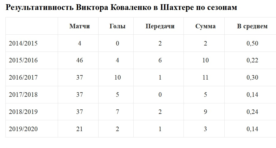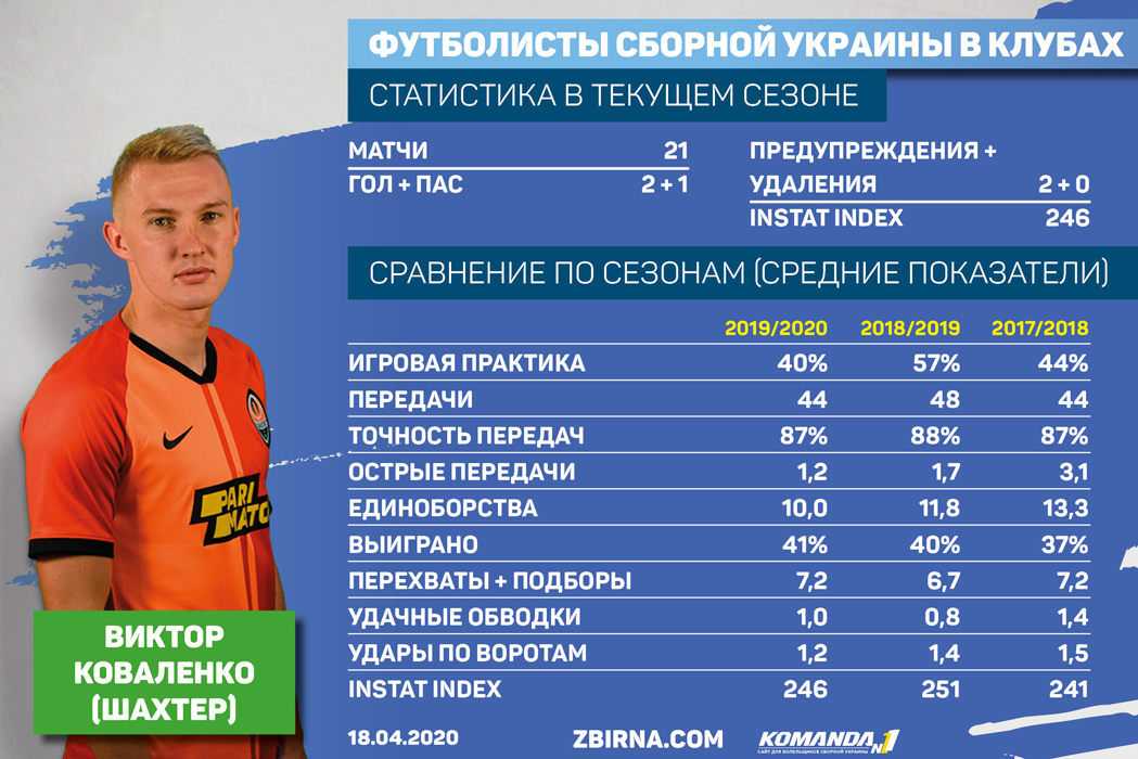 Табель успеваемости в клубе игрока сборной Украины. Виктор Коваленко