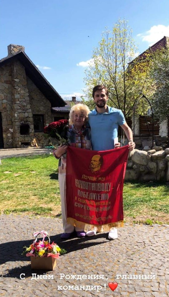 Полузащитник «Карпат» Алексей Хахлев в своем инстаграме поздравил с 76-летием бабушку с помощью совместной фотографии, на которой также был красный флаг с изображением Владимира Ленина.