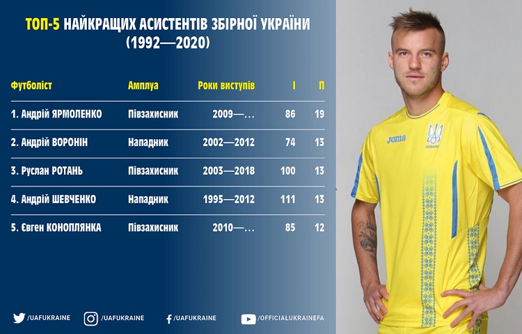 Дуже цікаво, що серед п’яти найкращих асистентів в історії збірної України опинилися й нинішній наставник нашої національної команди Андрій Шевченко, і сьогоднішній керманич молодіжної збірної Руслан Ротань.