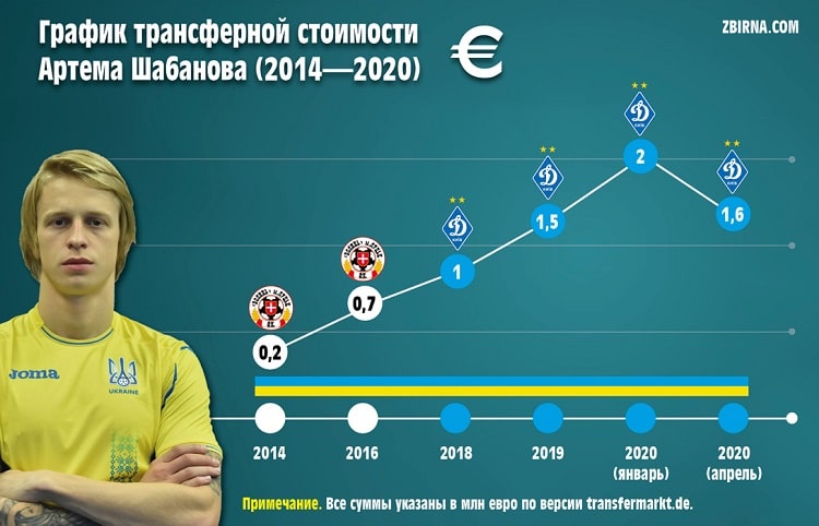 График трансферной стоимости Артема Шабанова: плюсы и маленький минус