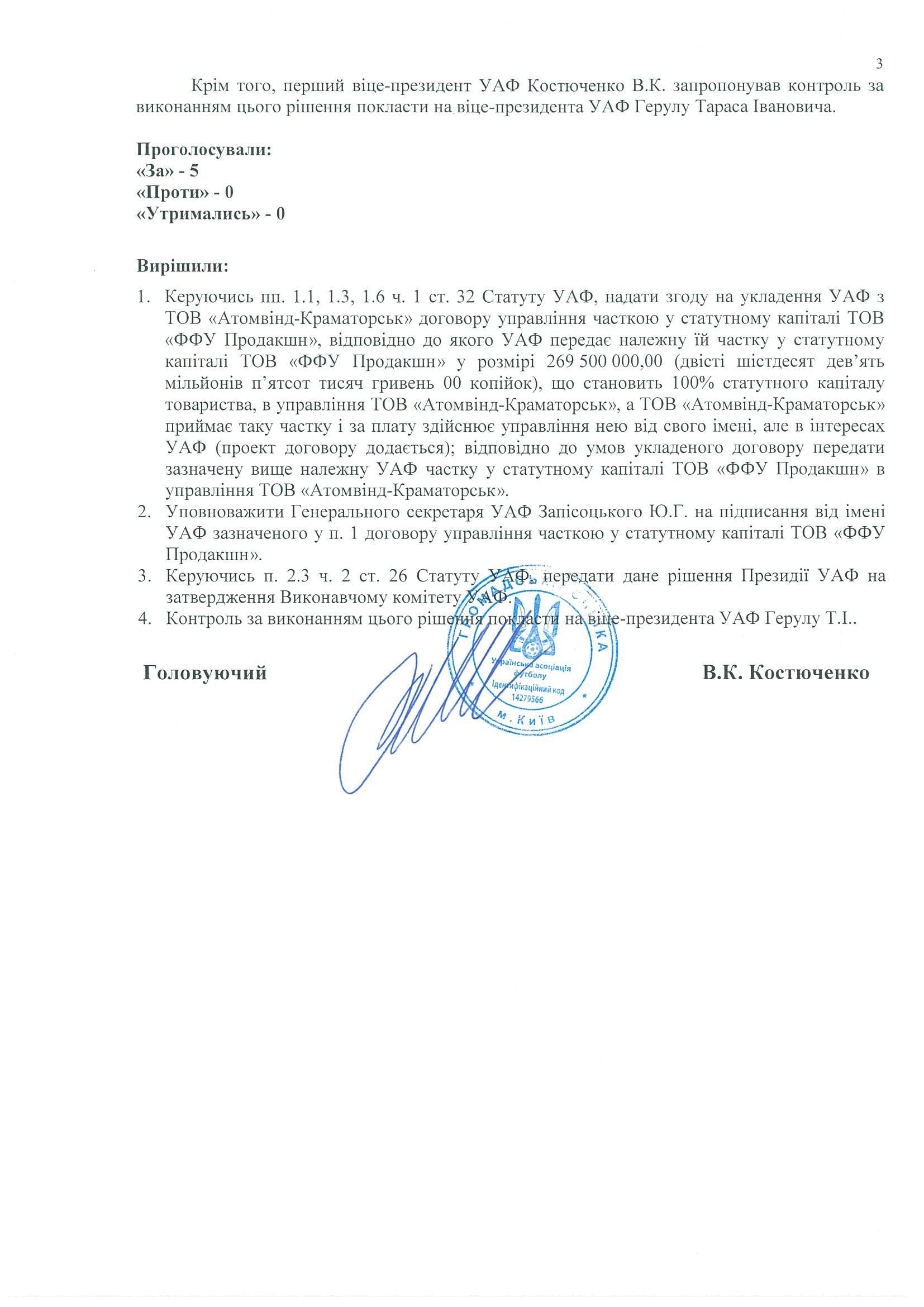 7. Оказывается, если верить постановлению президиума, вице-президент УАФ Тарас Иванович Герула проинформировал дистанционно собравшихся, что ООО «Атомвинд» неоднократно (28 января, 19 марта, 22 апреля) и, видимо, слезно умоляло передать ей в управление данный «завод», и внезапно Федерация решила пойти навстречу краматорским товарищам-энтузиастам с четко выписанной логикой – а всё равно от этого предприятия никаких дивидендов, так на тобi, небоже, що менi негоже! На всю немалую сумму уставного фонда и просто вбуханных денег.
