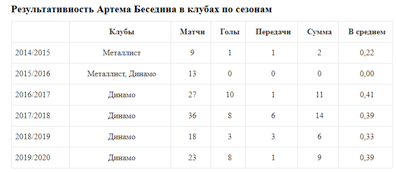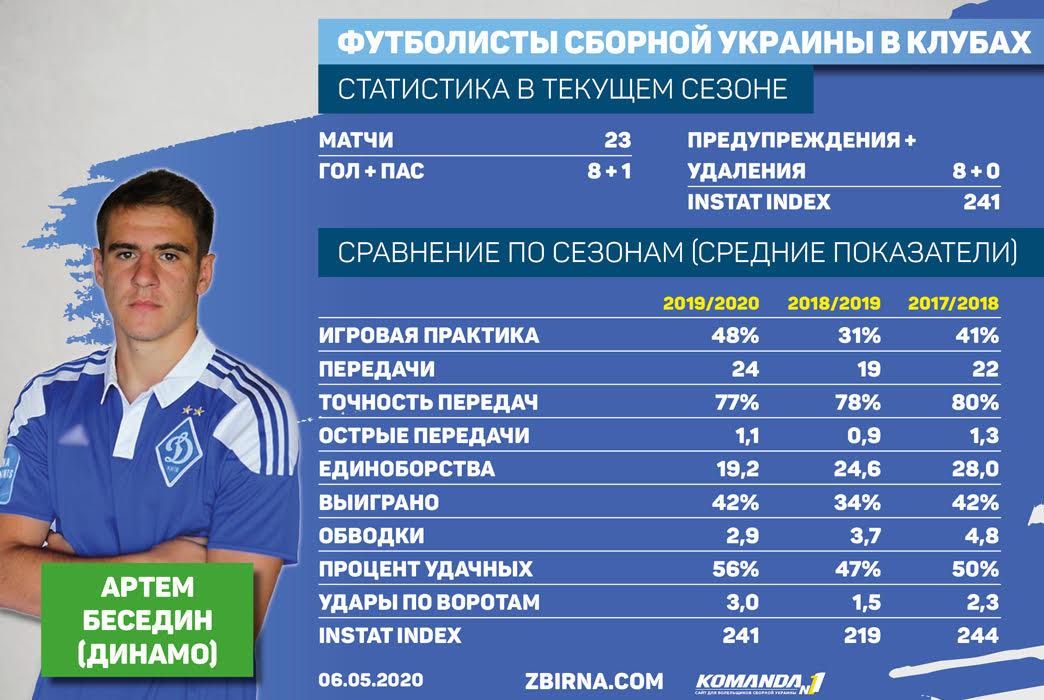 Табель успеваемости в клубе игрока сборной Украины. Артем Беседин