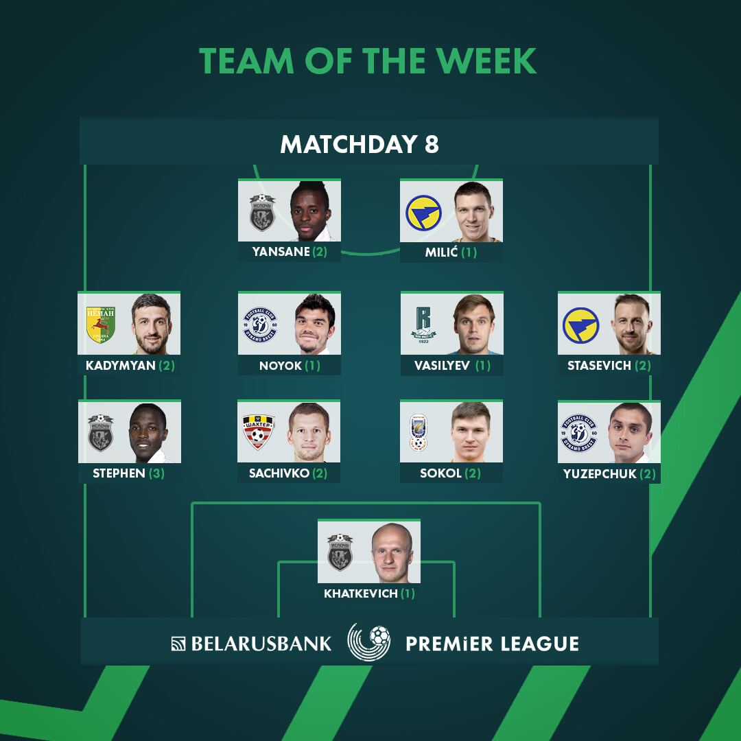 – защитники – Роман Юзепчук (Динамо Брест), Артем Сокол (Энергетик-БГУ), Александр Сачивко (Шахтер), Годфри Стивен (Ислочь);