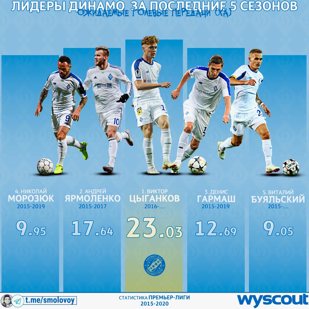 Андрей за два с копейками сезона набил цифру, которую очень нескоро кто-то в Динамо превзойдёт. Ну, а если Wyscout продолжит двигаться в сторону разбора полного сезона 2014/2015 (и ниже), то выйдет и на чистое первое место. Сегодня в базе данные только с сезона 2015/2016.