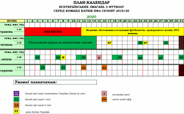 Украинская ассоциация футбола совместно с Профессиональной футбольной лигой (ПФЛ) разработала план-календарь заключительной части сезона.