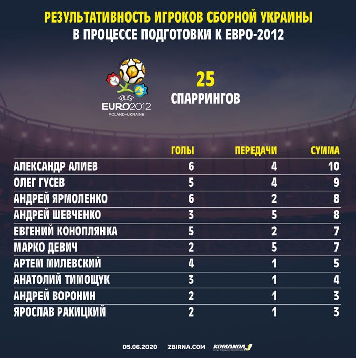 — После неудачного выступления в плей-офф ЧМ-2010 у нас было достаточно времени, чтобы зализать раны, — говорит Олег Гусев. — В новом году мы впервые собрались лишь после окончания сезона — в конце мая. Приступили к работе с большим оптимизмом, ведь нужно было постепенно готовиться к историческому событию — домашнему чемпионату Европы. Нельзя сказать, что начинали мы с чистого листа. Все-таки Алексей Михайличенко, как я уже говорил, существенно обновил команду, ввел в нее много молодых ребят. Но тренер был новым, и это, конечно, не могло не сказаться. Сборную Украины, пожалуй, впервые возглавил наставник, который не имел отношения к Динамо. Собрал нас Мирон Маркевич в Харькове. Такого раньше никогда не было, но дискомфорта мы не ощущали. Условия на базе Металлиста были прекрасные. Там и начался наш путь на Евро-2012.