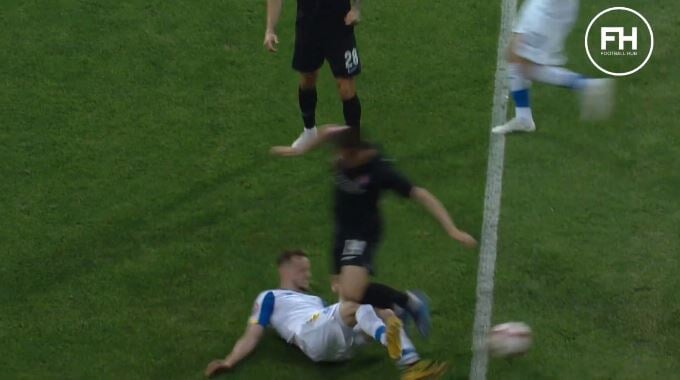 После просмотра видеоповтора дал динамовцу предупреждение, хотя правилами использования ВАР это не допускается.