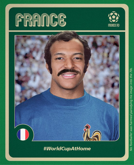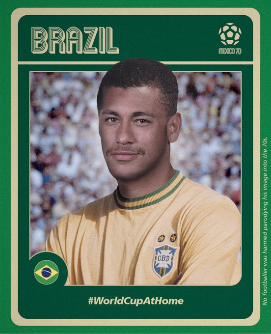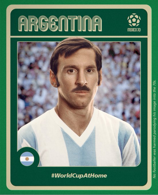 В честь юбилея твиттер чемпионата мира представил в ретро-образе 70-х звезд современного футбола – нападающих Лионеля Месси (Аргентина), Килиана Мбаппе (Франция) и Неймара (Бразилия).