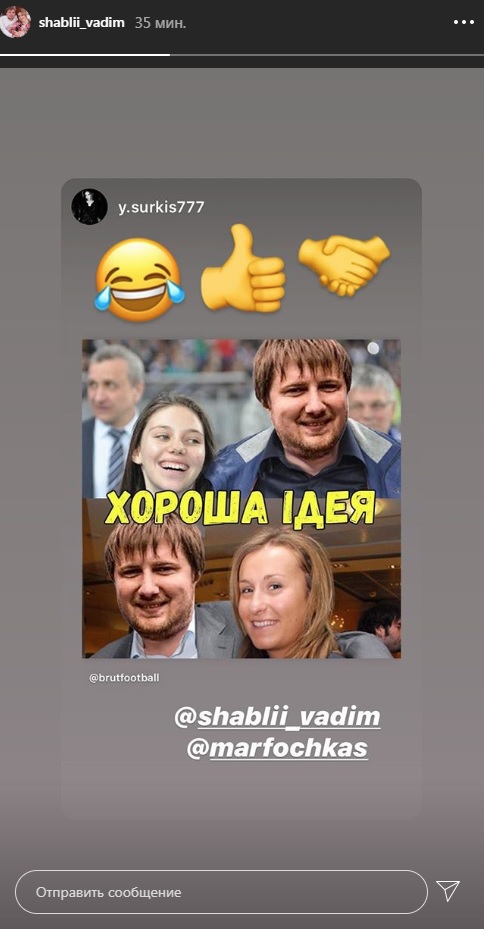 Не остался в стороне и сам Шаблий, сделавший репост фото и дополнивший его рядом смайликов.