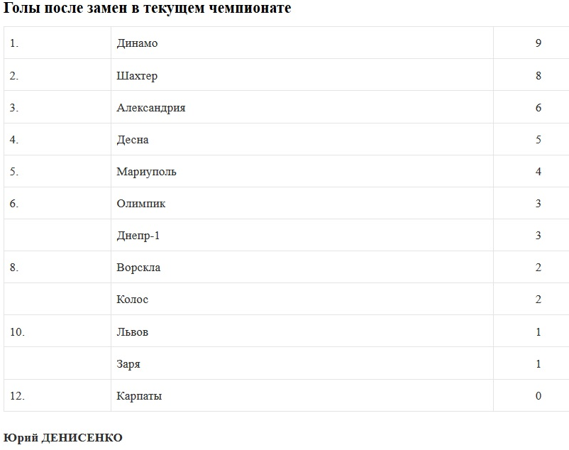 Многие тренеры УПЛ продолжают успешно пользоваться новой квотой по заменам. В минувшем туре в чемпионате джокеры забили сразу шесть мячей — это 38% от общего числа голов. Полузащитник Шахтера Тете вообще стал настоящим героем тура, оформив дубль и записав в актив золотой гол своей команды в сезоне. Два мяча провели и джокеры Динамо — Виктор Цыганков и Карлос Де Пена реализовали 11-метровые во встрече с Колосом. Забил с пенальти и запасной коваливцев Арни Вильхамссон, а Алексей Кащук поставил жирную точку в поединке Мариуполь — Львов. После 27-го тура лидером по числу голов джокеров остается Динамо (девять результативных ударов).