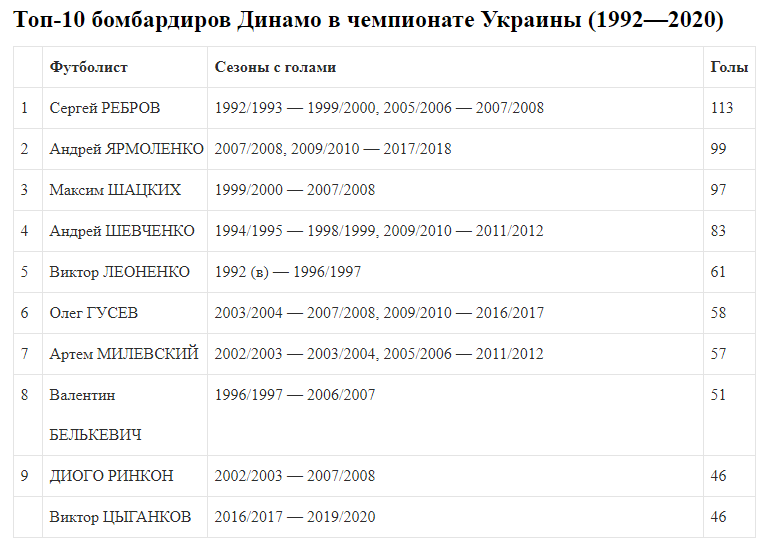 Столько же у Диого Ринкона, с которым Цыганков делит в рейтинге 9—10 места. Выше — только легенды. С двумя из них нынешний лидер киевлян успел еще поиграть за клуб. Остальных видел лишь по телевизору, а Виктора Леоненко — только в архивных записях.
