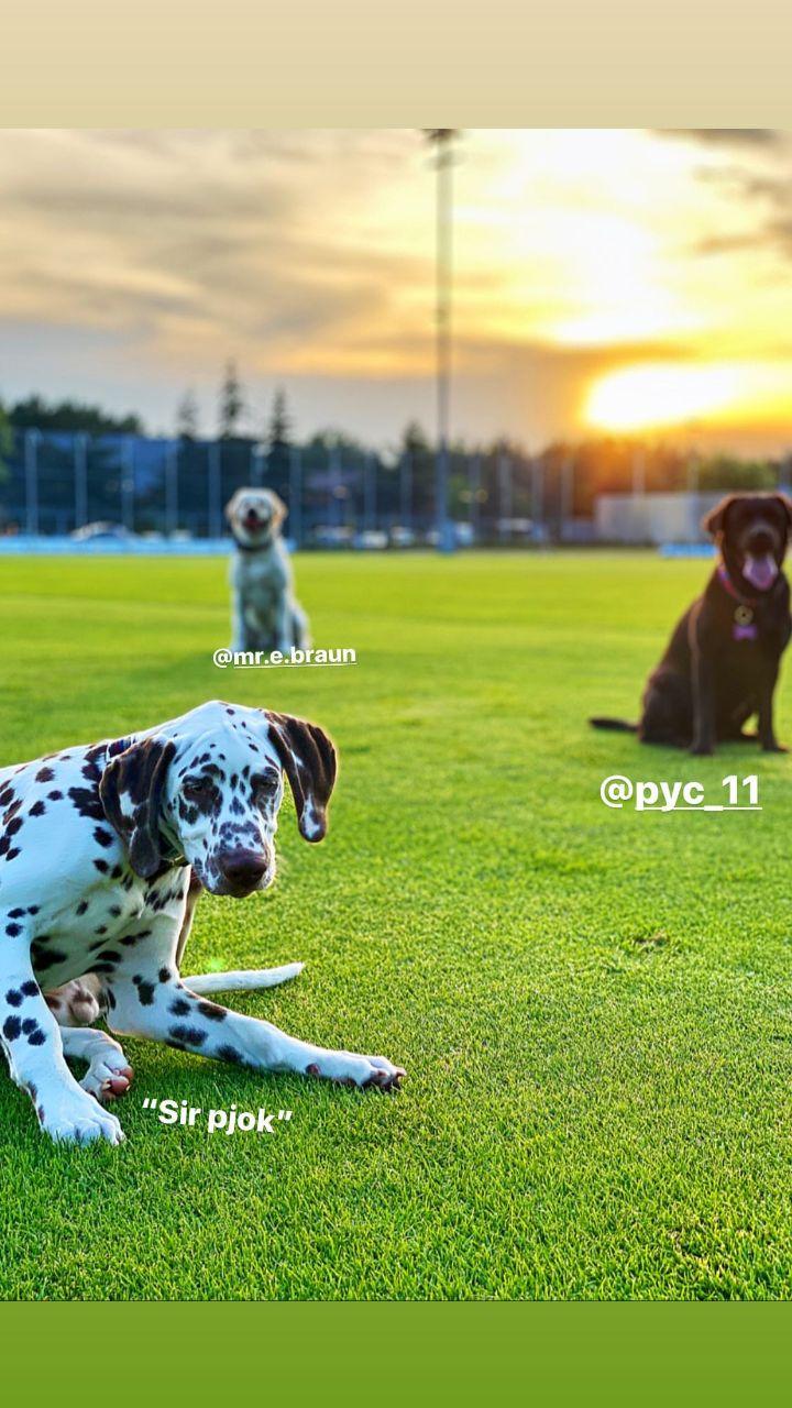 Полузащитник "Динамо" Миккель Дуэлунн поделился фото с собаками на тренировочном поле киевлян.