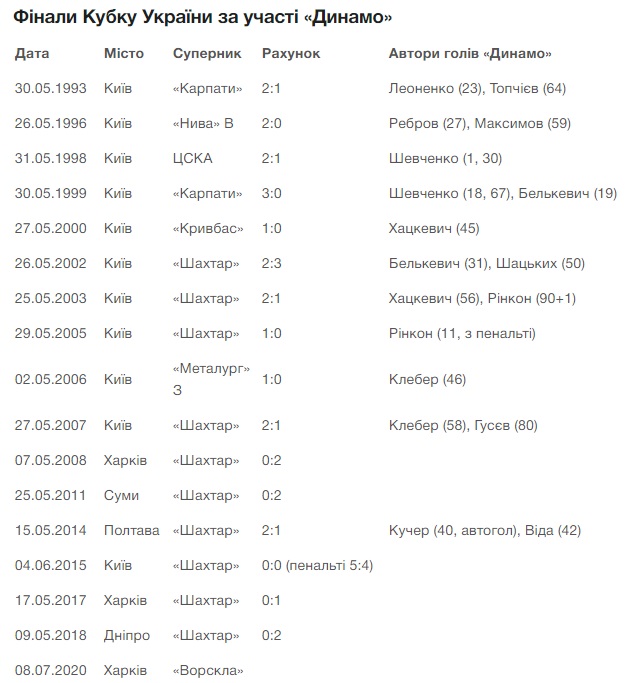 8 липня в Харкові на ОСК «Металіст» відбудеться фінальний поєдинок Кубку України-2019/2020. Напередодні вирішального матчу за трофей між «Динамо» та «Ворсклою» згадуємо історію виступів киян у фіналах.