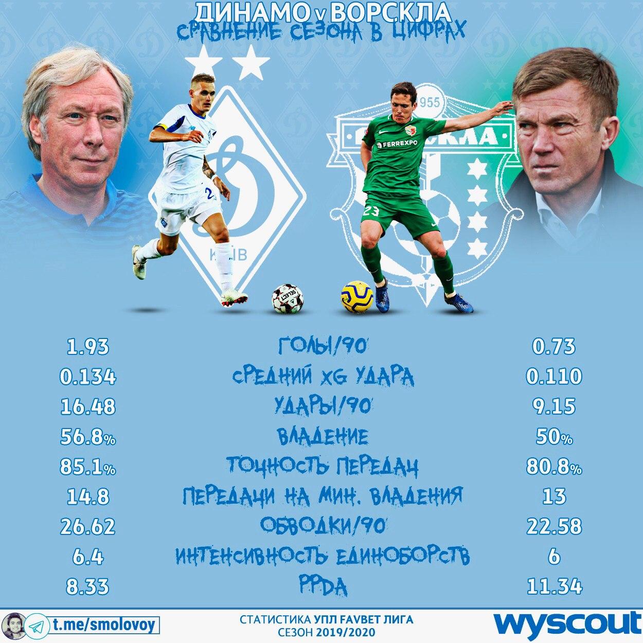 Блогер Михаил Смоловой в своем Telegram-канале проводит сравнение игровых показателей "Динамо" и "Ворсклы".