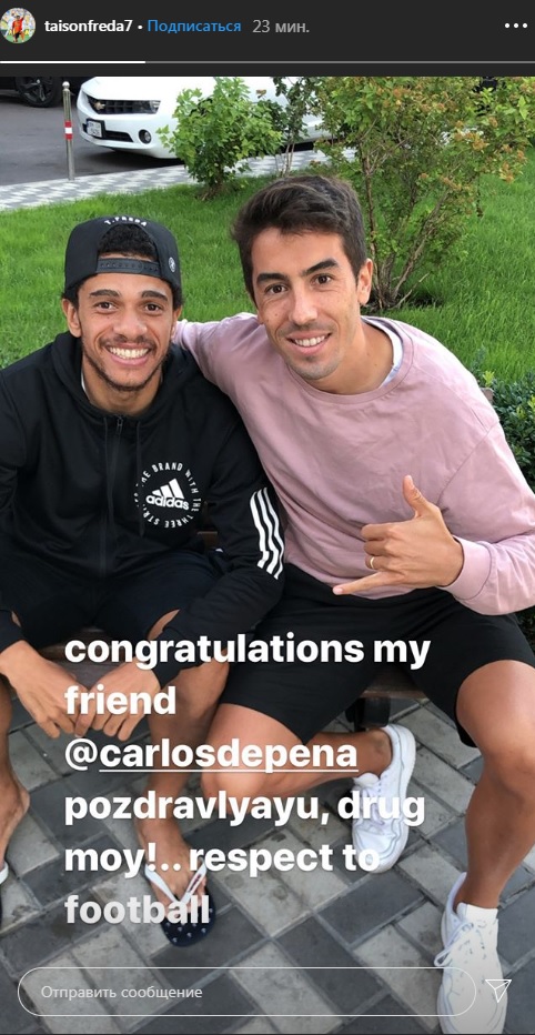 Полузащитник "Шахтера" Тайсон поздравил уругвайского легионера "Динамо" Карлоса де Пену с завоеванием Кубка Украины.