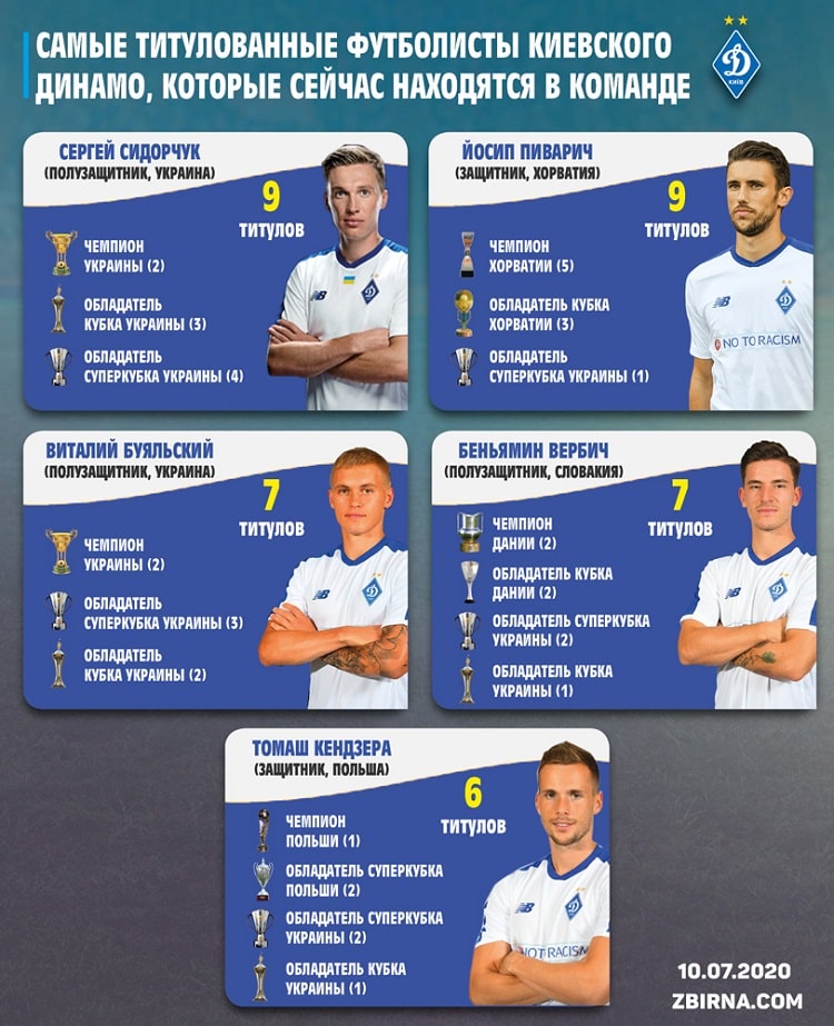 После победного финала Кубка Украины-2019/2020, zbirna.com решила посчитать титулы нынешних футболистов киевского Динамо и определить топ-5.