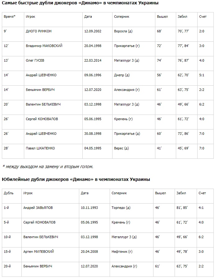 Беньямин Вербич в поединке с «Александрией» (2:2) стал автором 20-го дубля джокеров «Динамо» в чемпионатах Украины, в том числе 7-го в исполнении легионеров киевлян. Чтобы дважды поразить ворота «Александрии», словенцу понадобилось всего 14 минут после выхода на замену.