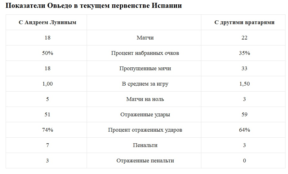Формула Овьедо с Андреем Луниным: в полтора раза меньше голов — в полтора раза больше очков