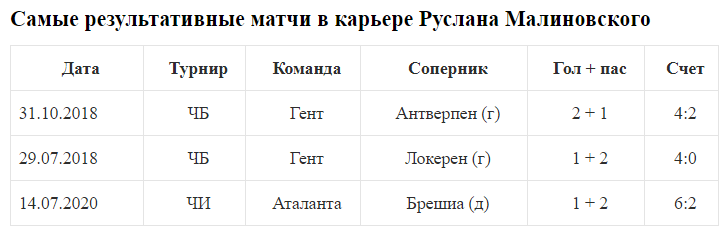 Руслан Малиновский повторил свой рекорд результативности в одном матче