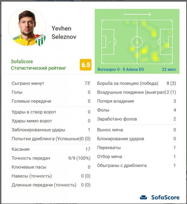 Сам Селезньов від статистичного порталу Sofascore отримав посередню оцінку 6,5 – другий найнижчий бал серед усіх гравців, які розпочинали матч з перших хвилин. Євген був інертним в атакувальній фазі, але, традиційно для себе, старанним у боротьбі, допомагаючи партнерам при обороні.