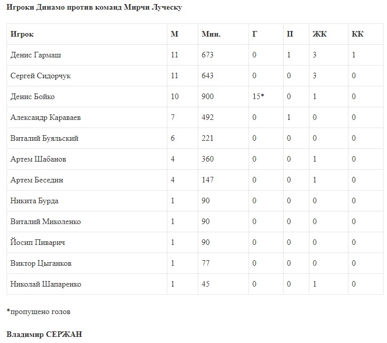 Так, 12 нынешних исполнителей противостояли своему новому тренеру, проведя суммарно 58 матчей. На Шахтер пришлась 51 встреча, на турецкую команду — семь. В список динамовцев попали один вратарь, четыре защитника, шесть полузащитников и один нападающий.