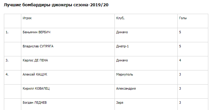 Из 520 мячей, забитых в сезоне-2019/20 (включая плей-офф), 77 (14,8%) записали в свой актив игроки, вышедшие на замену. Больше других отличились резервисты «Динамо» - 12 голов, «Александрии», «Днепра-1» - по 11 и «Шахтера» - 10.