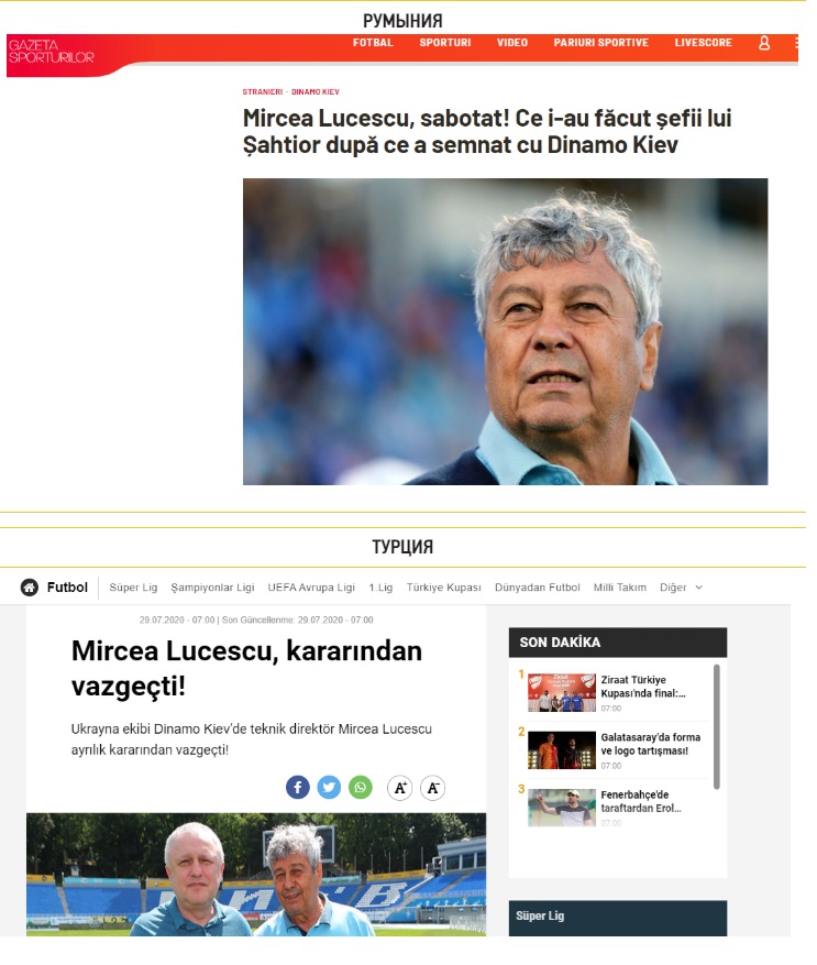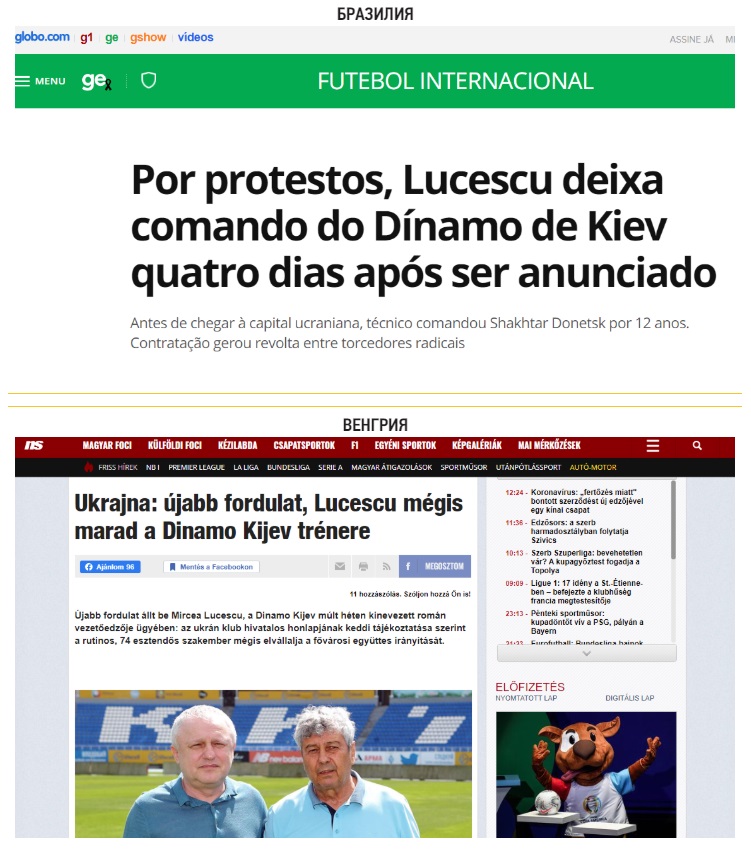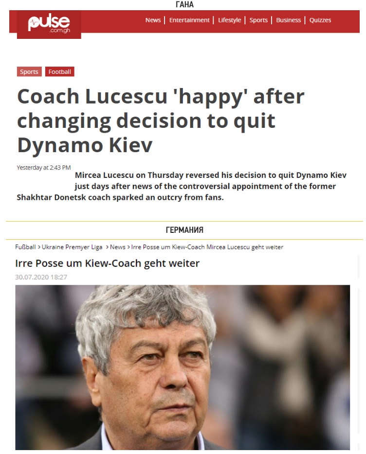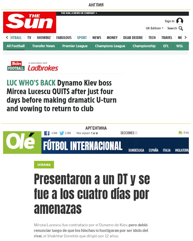 Назначение Мирчи Луческу в "Динамо", а также последующие события, связанные с румынским тренером, вызвали настоящую бурю эмоций в Украине. При этом новости из киевского клуба были настолько "горячими", что за этой ситуацией следили СМИ по всему миру. "Динамо" и Луческу настолько нестандартно начали свои взаимоотношения, что об этом говорят даже в тех странах, которые обычно не уделяют внимание украинскому футболу. Что там говорить, если даже в далёкой Индонезии обсуждают новости, которые касаются назначения Луческу. И пусть в большинстве своём иностранные журналисты просто цитировали сообщения официального сайта "Динамо", или румынских СМИ, которые рассказывали о переживаниях Мирчи, всё равно такого интереса к украинскому футболу уже давно не было.