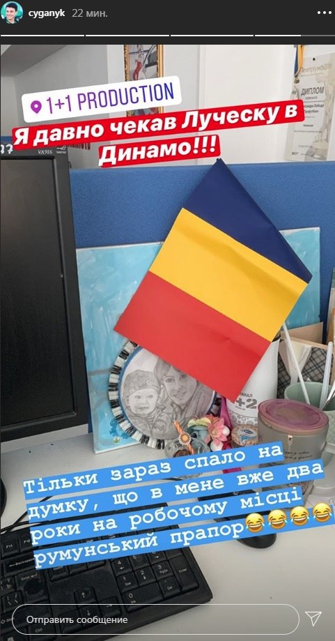 Тільки зараз спало на думку, що в мене вже два роки на робочому місці румунський прапор", - написав Циганик.