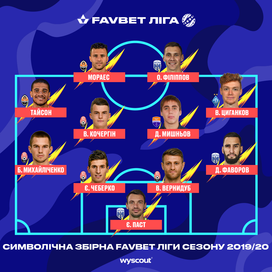 Одна з найавторитетніших аналітично-статистичних систем світу Wyscout, із якою співпрацює УПЛ, сформувала умовну символічну збірну Favbet Ліги