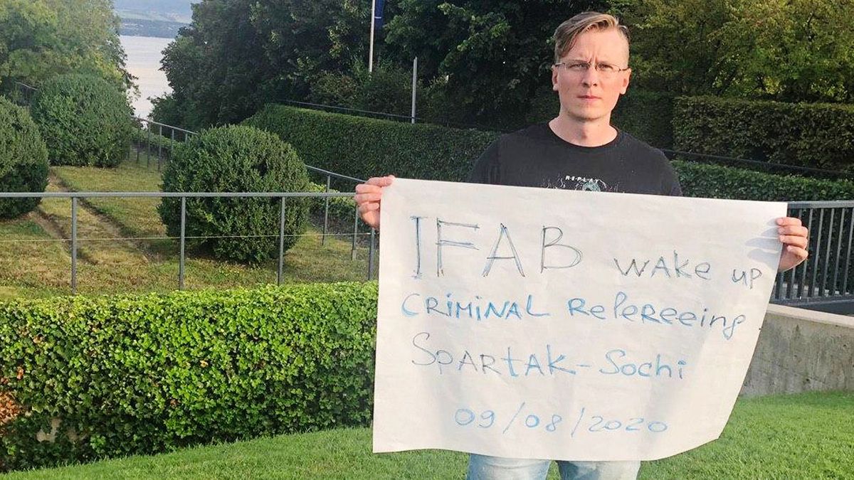 Болельщик «Спартака» провел одиночный пикет у штаб-квартиры УЕФА. Фанат красно-белых призвал Международный совет футбольных ассоциаций (IFAB) проснуться, назвав судейство в матче 1-го тура РПЛ «Спартак» — «Сочи» криминальным.