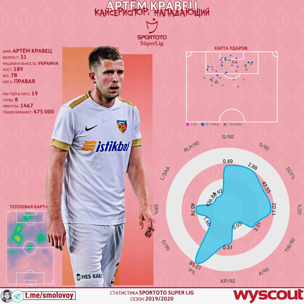 Его Кайсериспор - последняя команда Лиги по передачам вразрез (5.18/90) и пасам в последнюю треть (37.98/90), а по длинным - четвёртые с конца (36.28/90). Кравец провёл прошлый сезон аж никак не бегунком, которым был в Динамо...